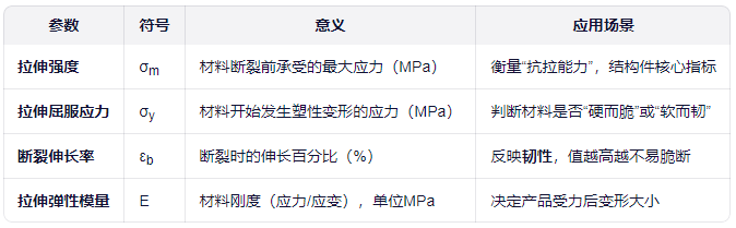 塑料虽轻便、易加工,但其力学行为复杂多样。通过拉伸测试,可获取一系列关键参数,用于: