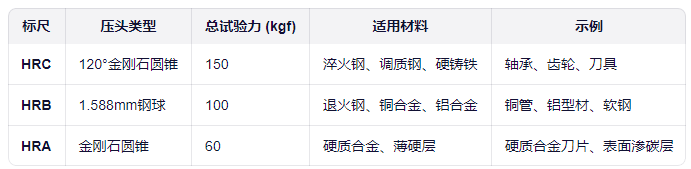 三、常见洛氏标尺:不同“压头+载荷”组合,适配各类材料