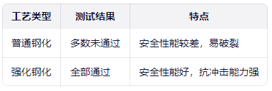钢化工艺对茶几桌面冲击性能有显著影响: