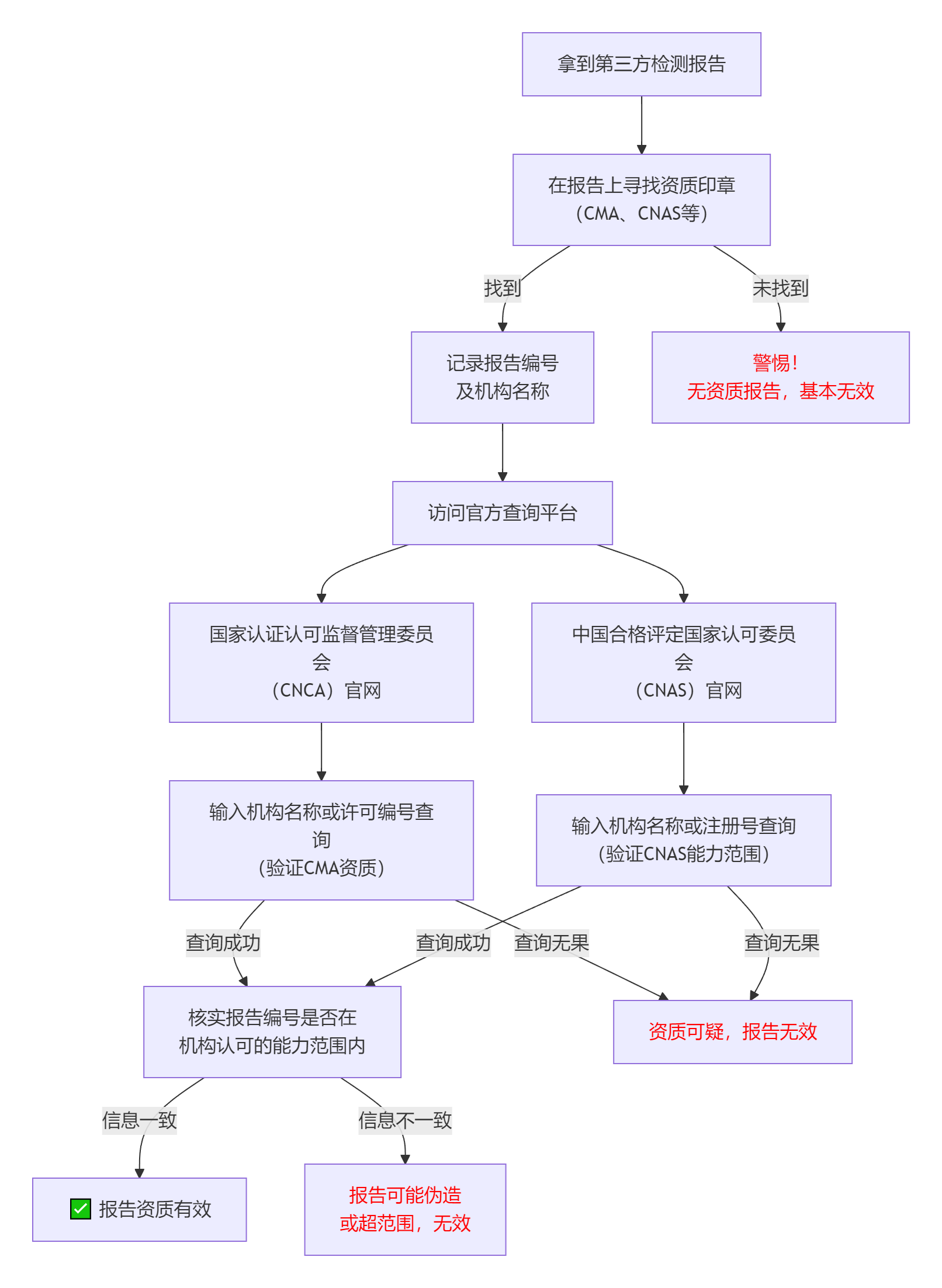 以下是查询第三方检测报告资质的详细方法和步骤,核心是 “看报告标识,查官方平台”