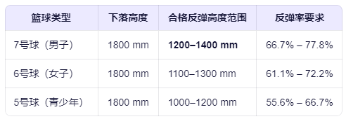 满足赛事标准:FIBA、CBA、NBA等均对反弹高度有明确要求。