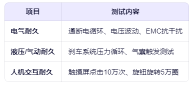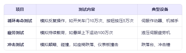 耐久性测试(Durability Test),是指通过机械、环境、电气、化学等多维度加载,模拟零部件在整车生命周期内的实际使用条件,评估其结构强度、功能稳定性与寿命极限的综合性验证过程。