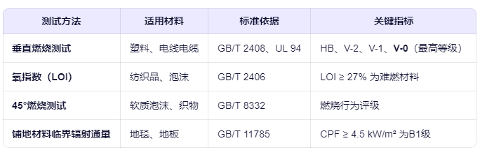 • 综合判定材料燃烧等级(A/B1/B2)。