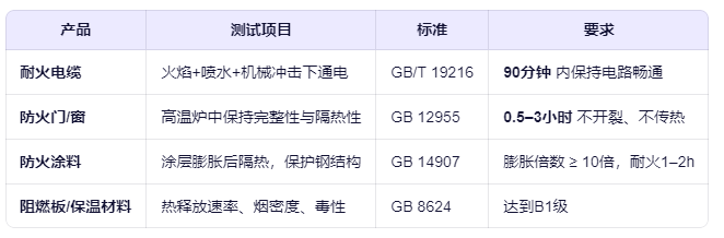 • 建筑:GB 8624《建筑材料及制品燃烧性能分级》